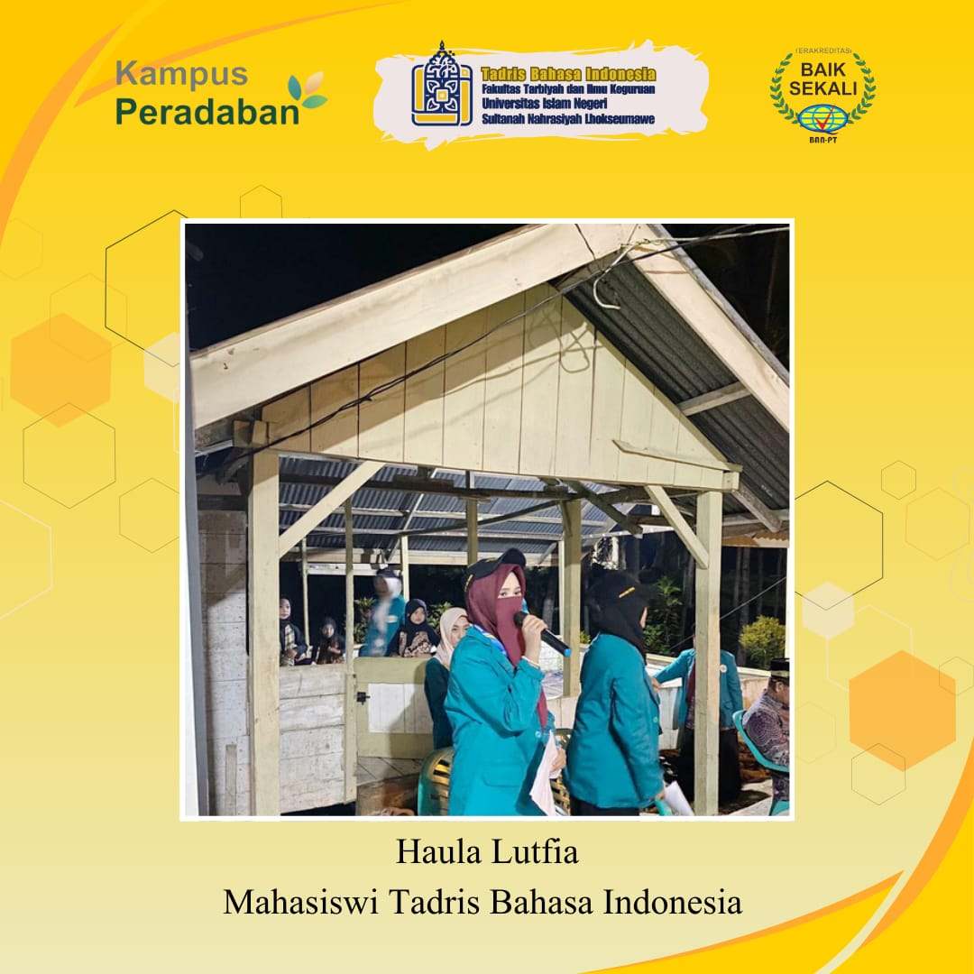 Cot Seumiyong, 8 Desember 2025 - Haula Lutfia, mahasiswi Jurusan Tadris Bahasa Indonesia (TBIn), Fakultas Tarbiyah dan Ilmu Keguruan (FTIK) UIN Sultanah Nahrasiyah Lhokseumawe, dipercaya menjadi Master of Ceremony (MC) dengan menggunakan bahasa daerah Aceh pada acara perpisahan KPM Kelompok 34. Kegiatan tersebut dilaksanakan di Musalla Desa Cot Seumiyong dan dihadiri oleh masyarakat setempat.