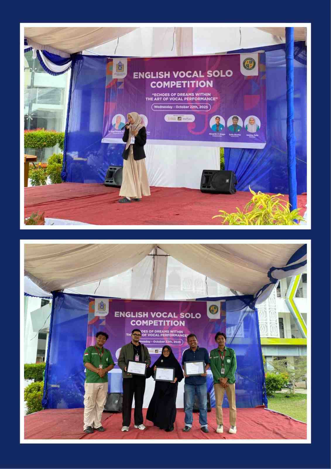 Lhokseumawe, 24 Oktober 2025 — Himpunan Mahasiswa Jurusan Tadris Bahasa Inggris atau English Department Student Association (EDSA) Fakultas Tarbiyah dan Ilmu Keguruan (FTIK) UIN Sultanah Nahrasiyah Lhokseumawe sukses menyelenggarakan English Vocal Solo Competition 2025 bertema “Echoes of Dreams Within the Art of Vocal Performance.”