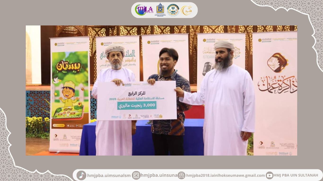 Kuala Lumpur, 4 November 2025 – Prestasi kembali ditorehkan oleh mahasiswa Jurusan Pendidikan Bahasa Arab (PBA) Fakultas Tarbiyah dan Ilmu Keguruan (FTIK) UIN Sultanah Nahrasiyah Lhokseumawe. Naufal Zuhdi berhasil meraih posisi keempat pada babak final AL-MULTAQA AL-OMANI: Arabic Public Speaking Competition yang diselenggarakan oleh International Islamic University Malaysia (IIUM) dalam rangkaian The Ninth International Conference & Global Arabic Islamic Annual Festival (GARIIF25).