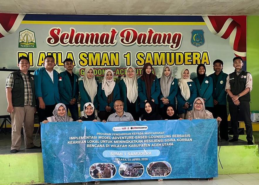 Guna memulihkan dan meningkatkan resiliensi psikologis siswa yang pernah terdampak bencana, sebuah langkah kolaboratif strategis berhasil diwujudkan melalui program "Implementasi Model Adventure-Based Counseling Berbasis Kearifan Lokal untuk Meningkatkan Resiliensi Siswa Korban Bencana di Wilayah Kabupaten Aceh Utara". Kegiatan ini sukses diselenggarakan di SMA Negeri 1 Samudera pada hari Selasa, 21 April 2026. Kegiatan ini merupakan bentuk tindak lanjut dari Implementation Arrangement (IA) antara tiga program studi, yaitu Program Studi Bimbingan dan Konseling (BK) Universitas Pendidikan Indonesia (UPI), Program Studi Bimbingan dan Konseling Pendidikan Islam (BKPI) UINSUNA, dan Program Studi Bimbingan dan Konseling Islam (BKI) UINSUNA. Sinergi lintas institusi ini bertujuan untuk menghadirkan intervensi psikologis yang komprehensif, memadukan pendekatan konseling akademis mutakhir dengan nilai-nilai spiritual serta budaya masyarakat setempat.