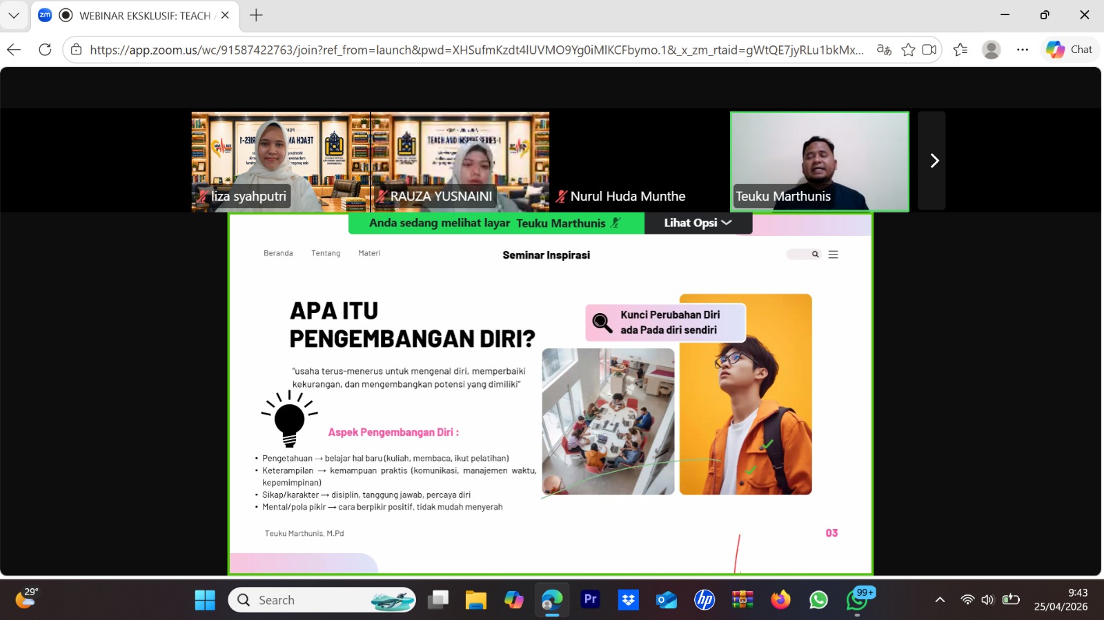 Sukses Digelar! Teach and Inspire Series 1 Kolaborasi PRODI PGMI (SUARASA) dan HMJ PGMI UIN Sultanah Nahrasiyah